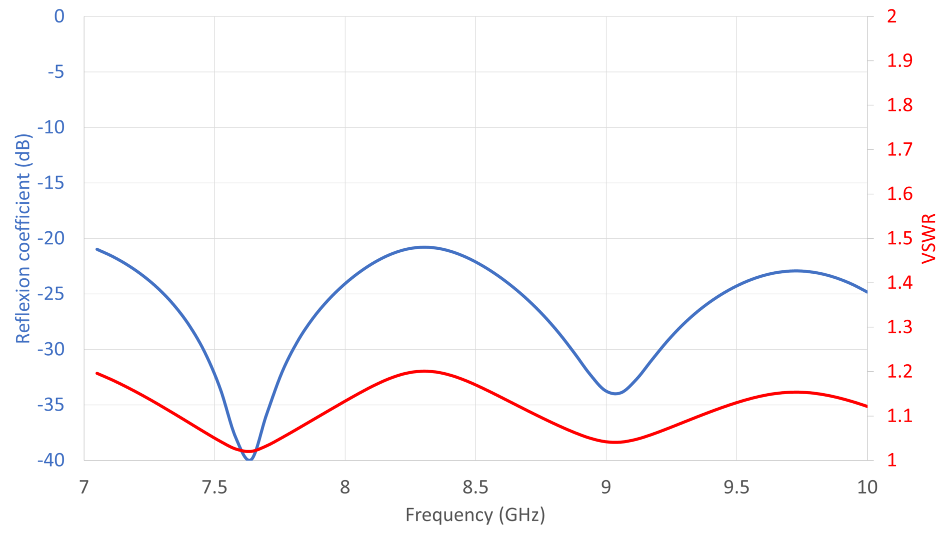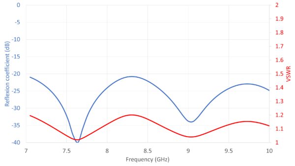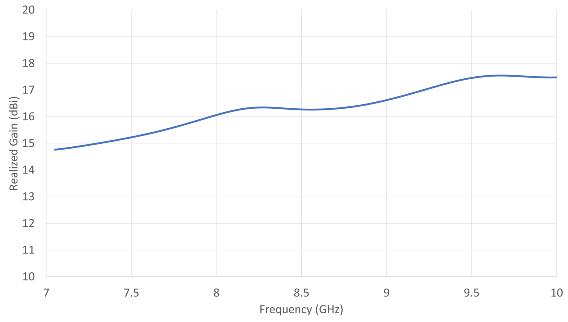 L’antenne cornet ELL-A3D-SP-07051000-01 fonctionne dans la bande de fréquence de 7.05 GHz à 10 GHz, celle présentée ici à un gain typique de 15 dBi (d’autres gains disponibles à la demande) et une dimension de 90 x 110 x 66 mm3 (W x L x H). L’antenne est proposée en impression 3D métallisé pour un prototypage rapide avec un délai de livraison court. Les cornets sont disponibles avec un accès coaxial SMA, ou avec une bride d’accès guide d’onde dimensionnée en fonction de la fréquence d’utilisation (Les documentations sont présentés pour une version guide d’onde WR).